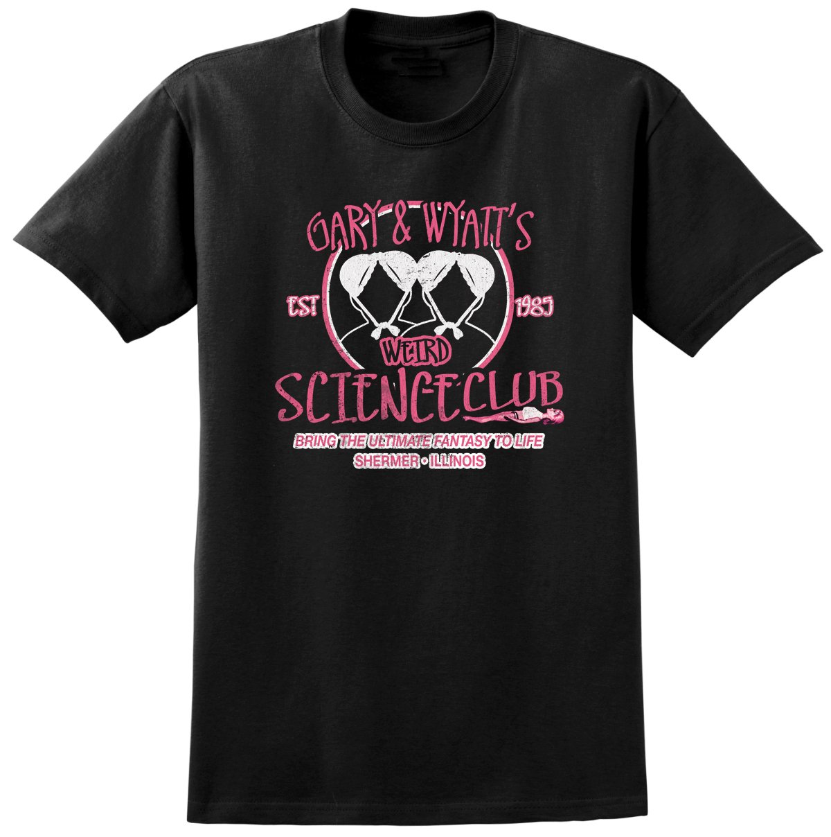 Weird Science design printed onto a black T-shirt.