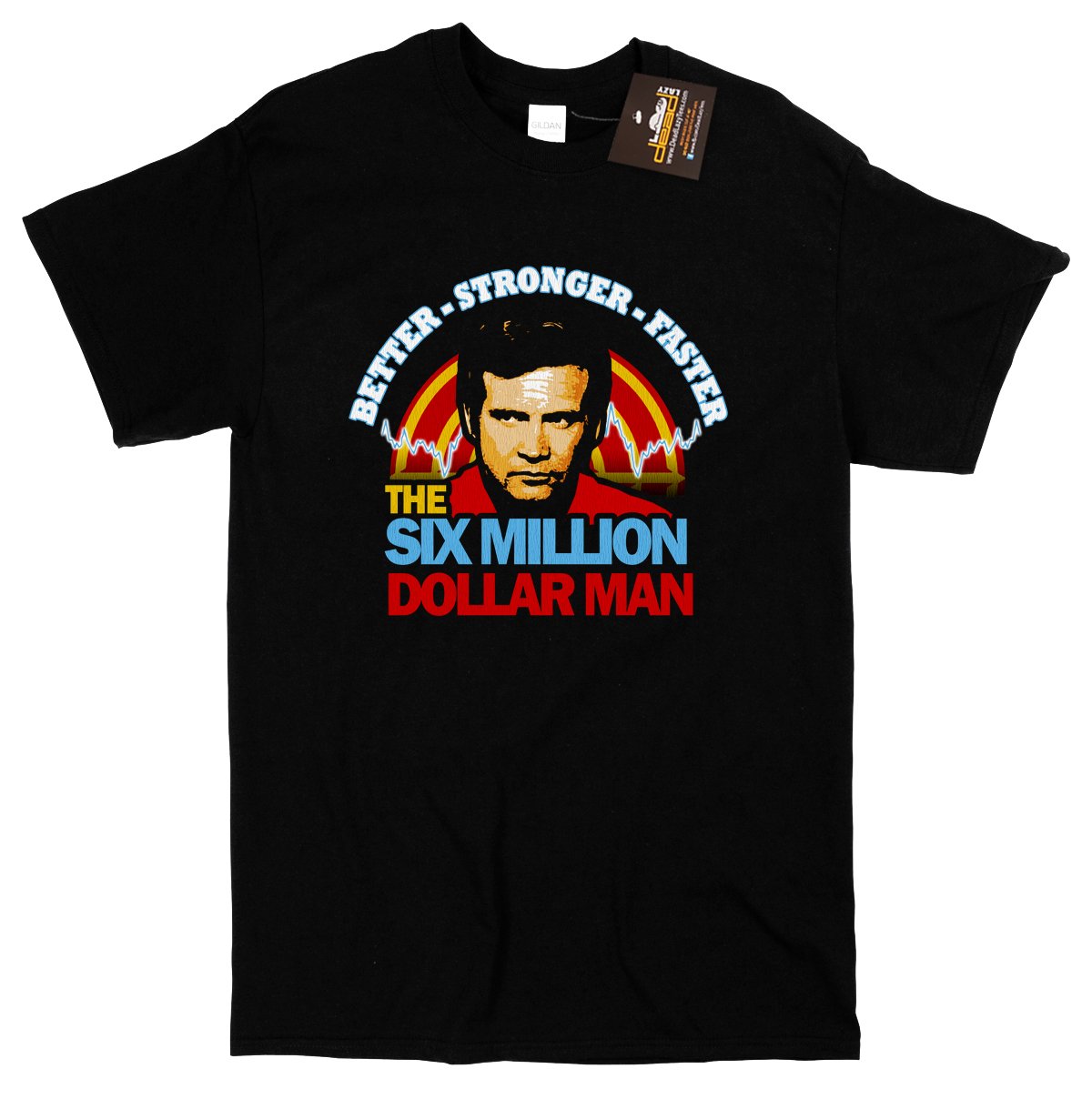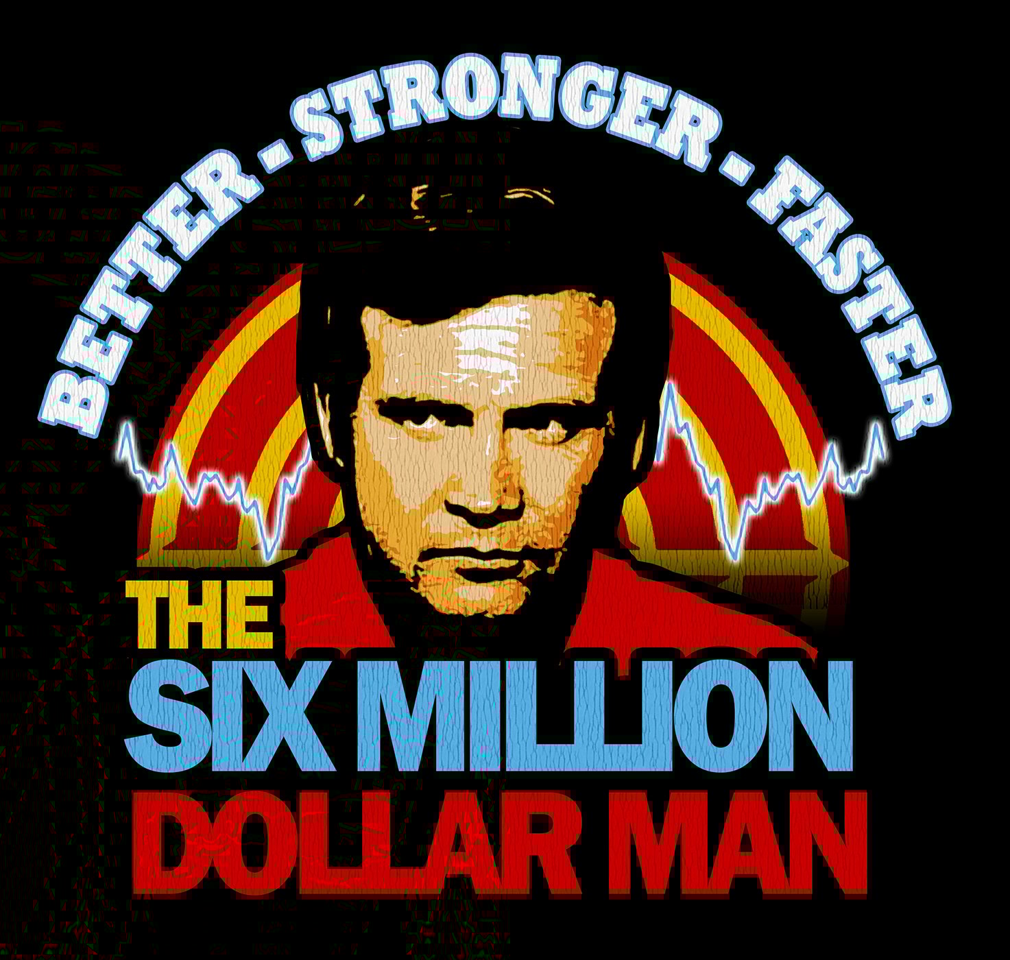 Six Million Dollar Man inspired design printed onto a black T-shirt.